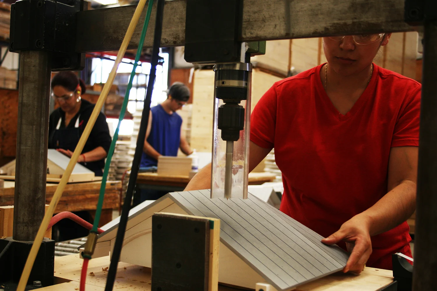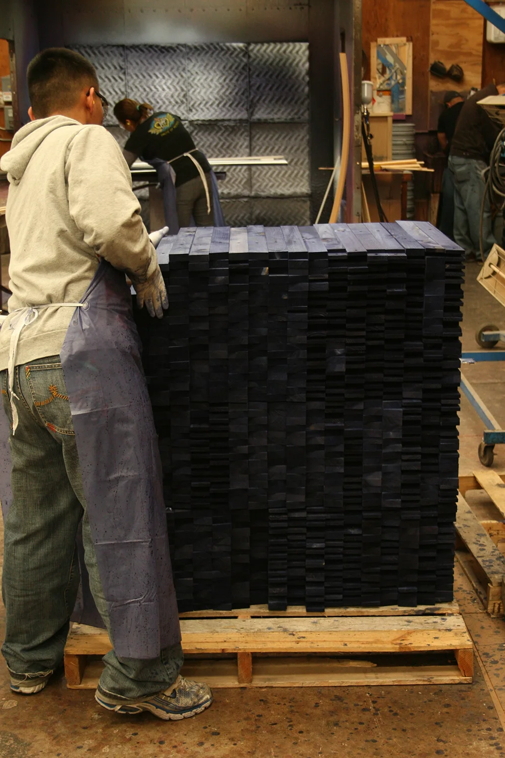 Once each component is crafted, our assembly crew brings them together to create the final piece. We use pneumatic guns with brads, staples and nails as well as screws, bolts and specialty fasteners. We'll design your piece to be shipped fully assembled or knocked down with simple assembly instructions. We're committed to packing our products in the most environmentally responsible manner possible.